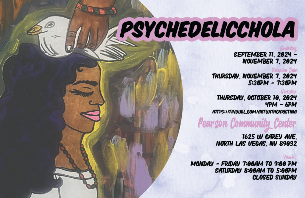 Location: Pearson Community Center 1625 W. Carey Ave., North Las Vegas, NV 89032 About the Artist Christina Flores-Escobar created the artist brand Psychedelicchola to highlight her experiences as a woman […]