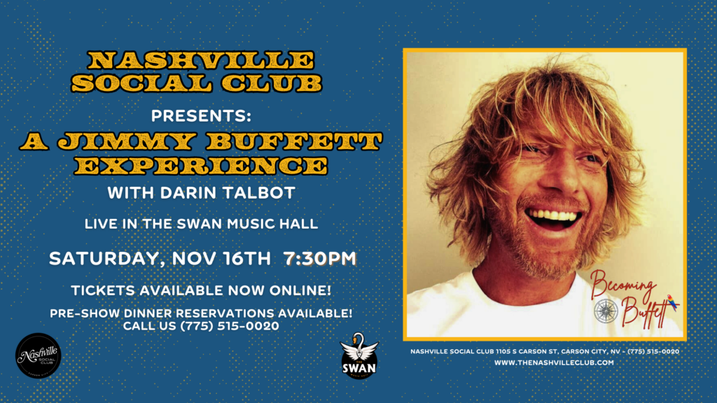 American singer/songwriter, Darin Talbot is coming back to Northern Nevada for a night of laughs and tunes as he “becomes” Jimmy Buffet! Stop by Nashville Social Club on Saturday, Nov. […]